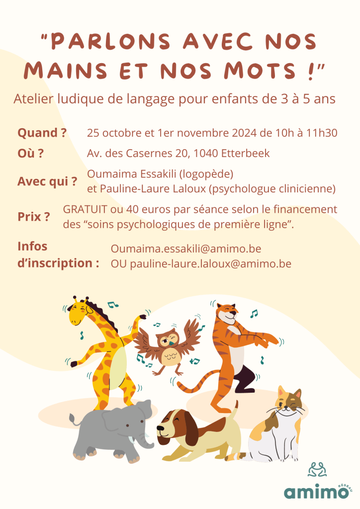 « Offrez à votre enfant un moment unique et stimulant pour développer ses compétences langagières tout en s’amusant ! Cet atelier d ‘ 1h30, animé par une logopède et une psychologue clinicienne, propose un parcours ludique où votre enfant pourra découvrir le langage à travers le jeu, les gestes et des activités interactives.